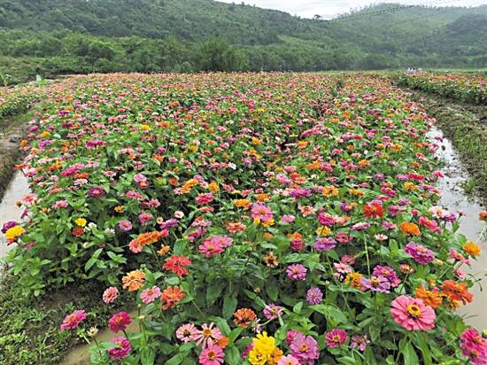 2020年,由东莞企业出资建设的“军田百日菊种植基地”呈现出一片生机盎然的绿色,成为枫湾镇的网红景点。