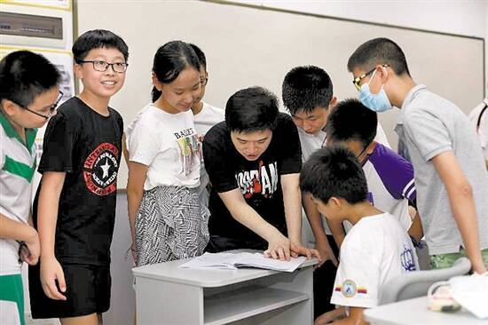 7月中上旬,广州各小学期末考相继落下帷幕,位于岗顶龙晖大厦内的悦教育培训机构显得颇为热闹:教室外,家长三五成群交流着辅导孩子的心得;教室内,孩子们思考着题目的求解方式,不时在老师点拨下“唰唰”记录一题多解的法门。