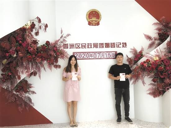 7月15日,珠海市婚姻登记“全城通办”启动仪式在香洲区民政局婚姻登记处举行。据悉,珠海市婚姻登记“全城通办”已在7月8日实现网上预约,并已成功为数对新人办理登记。
