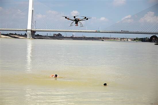 “每天清晨5时到7时,16时以后,我们都会在辖区河道劝阻野泳。”城南派出所巡防民警张锡芬介绍,当地游泳爱好者有不少,野泳高发时段集中在早晚时段,民警每日都必须在该处巡逻劝阻。但每次有时想劝离群众时,他们早已经游到了距离数十米的河中心,根本听不到民警的喊话的声音。同时,民警只能在每个野泳点巡逻,无法鸟瞰整条河道情况。而无人机的加入,较好地解决了这个问题。