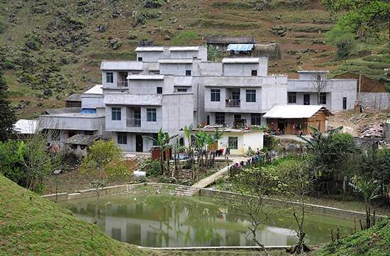 “袅袅炊烟,小小村落,路上一道辙……”1500米海拔、大山顶部的广西百色市那坡县百省乡那布村水弄二社,如今呈现的是“归园田居”的闲适生活场景:清一色的两层水泥楼房错落有致,屋前旧瓦房改建的牛栏内几头牛吃着草。村里的水泥路上不时窜过各家各户散养的鸡鸭。路边、屋舍旁,有苗族女子身着民族服饰在纺线,路边还放着织麻的工具。20立方米和40立方米的两个大蓄水池解决了村民的吃水问题,路上竖起的太阳能电灯照亮了村民回家的路。顺着路灯往上,就是中越边境线的铁丝网,这是名副其实的边境村。