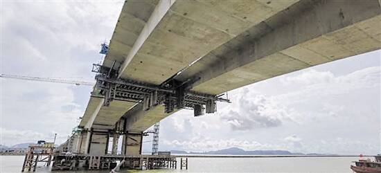 羊城晚报讯 记者郑达、通讯员张秋萍摄影报道:8月12日23时许,随着最后一方混凝土顺利输送至第19节号块顶面,珠海鹤洲至高栏港高速公路一期工程白藤河特大桥左幅主墩中跨合龙段顺利合龙。珠海市鹤洲至高栏港高速公路一期工程HGTJ2标段,东侧起点位于鹤洲南,与鹤港高速先行标(鹤洲南互通立交)相接,西侧终点位于金湾高尔夫球场与红旗1号大桥相接,路线全长2.909公里,包括白藤河特大桥(长939.17m)、白藤互通(全长1970m)。