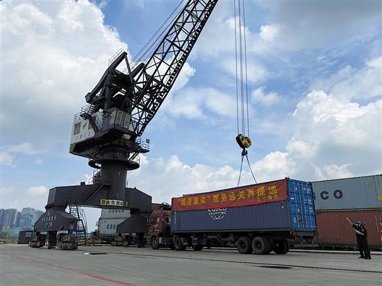 “我们申报出口的货物在‘抵港直装’模式下,能把货物在港口堆存时间降为零,无需等待吊装,可以直接装船,实现了出口货物通关零等待。”中国外运华南有限公司江门分公司报关人员伍先生表示。