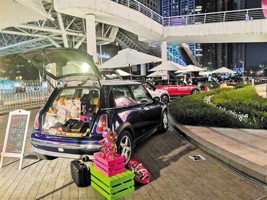 除了在室内开展活动,广州K11还将活动地点拓展到室外。八月初,广州K11举办了MINI车尾箱市集,由20部MINI汽车排起市集的队伍,在车尾箱摆上各式各样的商品供顾客选购。记者走访发现,现场人气颇旺,汽车车尾箱上的商品包括鲜花、衣服、公仔等,价格对于消费者而言更容易接受,顾客对汽车市集这种新鲜的形式较感兴趣。市民张小姐表示:“逛市集更能带来逛街的感觉,以往只能在别人求婚仪式上看到的装满鲜花的车尾箱,现在也能亲眼见着了。”