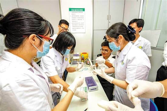 蔡雪妍(右2)开展血涂片制作实操培训