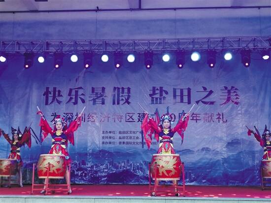 8月30日—31日,深圳盐田区文化广电旅游体育局主办的“欢乐暑假·盐田之美”公益文化活动演出在盐田街道人口广场精彩展演。活动旨在“抓住暑假的尾巴”,鼓励暑假的青少年通过“分享精彩的文艺演出”,满怀对学习的“向上动力”,同时为深圳经济特区建立40周年精彩献礼。