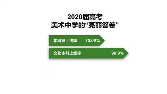 据广州市美术中学陈旭东副校长介绍,2020届高考文化本科上线率98.9%,本科双上线率70.09%;录取率方面,2020届九大美院及一本高校录取率为18.23%;2020年本科录取率为66.67%。