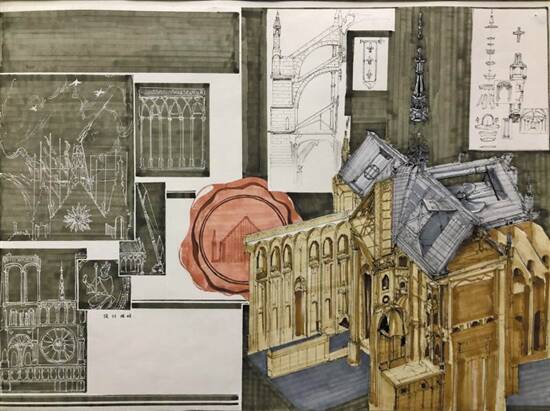 父母对孩子选择的充分尊重,加上老师的循循教导,都让俊泽的个性展现得更为淋漓尽致。俊泽偏好用最细的0.01mm针管笔,画面上几乎不见粗线与重色块,按说画面很容易发灰,没力度,不显眼,但他能把这种“弱势”发展成为自己的特点,即高明度的高级灰画面——清新雅致,柔中带刚。高三设计科卢菁老师表示: “这种调适,是他两年间通过细致缜密的推敲及无数的画面实验摸索出的成果。”