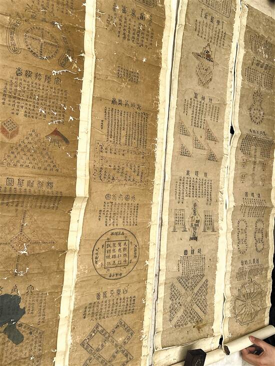如今在惠州,遗留下来的修禊相关文物很少。因此,惠州老船厂的“镇馆之宝”晚清四条屏尤显珍贵。惠州市文史专家何志成介绍,这是晚清时期古代文人的游戏实物,每条屏宽约30厘米,长约120厘米,每条屏上都有4个图案,四条屏共有花篮、旗帜、瓶镜、碎锦、葫芦、伏羲等16个图案,每个图案内都有拆字诗、藏头诗、迥文诗等。参与诗文创作并署有名字的有24人,应是当时惠州的文化名人、社会名流。