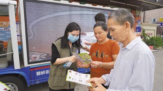 在“定点+流动”禁毒宣传活动中,综治流动宣传车环绕着各城中村主次干道缓慢行驶,循环播放禁毒知识视频,吸引了大量外来务工人员、村民前来观看。同时,禁毒社工向过往居民派发禁毒宣传折页,促进广大群众深入了解毒品的概念本质、伪装形式及现实危害,普及我国禁毒有关政策和法律法规,并提醒居民提高警惕,远离毒品。