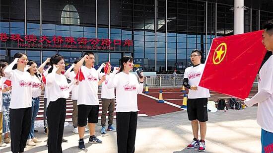 青年员工集聚港珠澳大桥公路口岸,齐唱国歌,重温入团誓词
