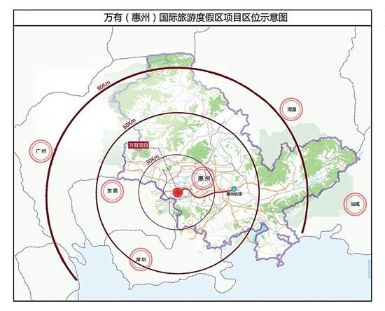 记者了解到,该项目选址惠州仲恺高新区潼湖镇湿地附近,总规划用地面积约2200公顷,总投资600亿元,计划建设最具特色八大文化旅游景区和万有文旅生态城融为一体的世界级文化旅游综合体。