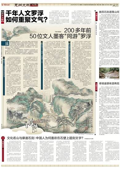 罗浮山现存的摩崖石刻有数百处,年代久远、内容丰富、字体优美、均散落在罗浮山十八洞天秀谷幽岩和飞瀑名泉的石壁中,具有极高的历史价值和欣赏价值。近日,记者走进罗浮山,实地探访了名列古酥醪八景之一的“茶山飞瀑”,了解罗浮山摩崖石刻现状。
