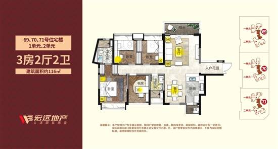 推荐户型:三房两厅 约116平方米