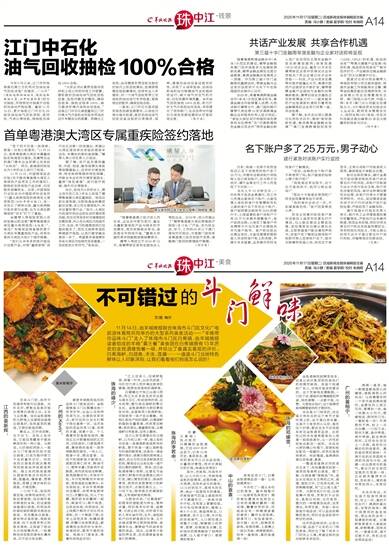 11月14日,由羊城晚报联合珠海市斗门区文化广电旅游体育局共同举办的大型系列美食活动——“羊晚带你品味斗门”走入了珠海市斗门区白蕉镇,由羊城晚报读者组成的羊晚“霸王餐”美食团在白蕉镇拥有13年历史的金胜酒楼饱餐一顿,并给出了最真实客观的评价。白蕉海鲈、白鸽鱼、禾虫、莲藕……一道道斗门当地特色鲜味让人印象深刻,让我们看看他们到底怎么说的!