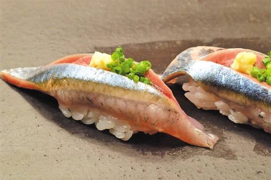 秋刀鱼是日本料理中最具代表性的秋季食材。这种鹤鱵目秋刀鱼科的小海鱼,是东亚地区极为常见的食用鱼类,捕捞量巨大,堪称“物美价廉”。秋刀鱼首尾纤纤、背部幽蓝、腹部银白,清素而利落,身体中央有一道浅浅的淡蓝色纵带,可以长到大约30厘米长。