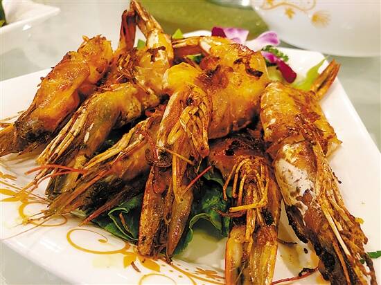 这道香煎大海虾,色泽是金黄,看卖相就特别诱人。