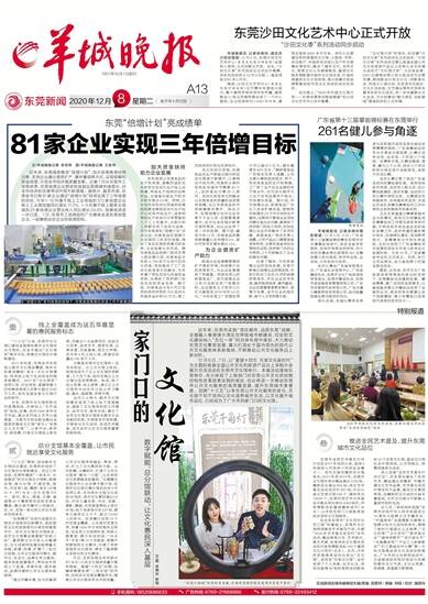羊城晚报讯 记者余晓玲、通讯员沙田宣报道:12月6日,东莞沙田文化艺术中心(东莞文化馆沙田分馆)全面投入使用,正式向群众开放。当天,“沙田文化季”系列活动也正式拉开帷幕。该系列活动将从12月6日起,一直延续到2021年2月初。