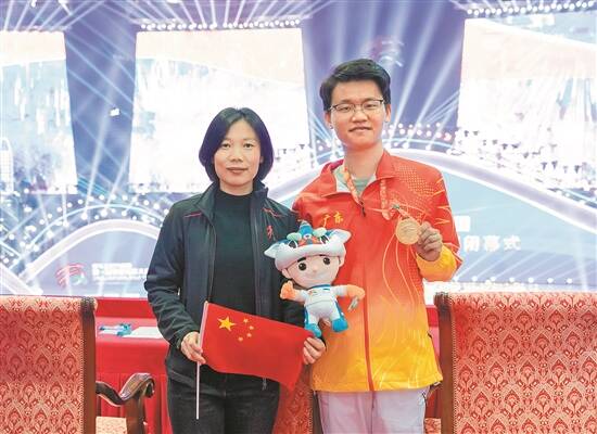 获奖选手陈骏安(右)与教练老师沈晓霞(左)