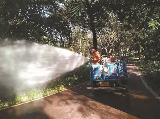 园林美化有保障。日均出动园林工人1200余人,补种绿化带500平方米,清理杂草2011平方米,组织各绿化养护管理单位集中力量对中山公园、季华公园、佛山公园、东平河湿地公园、文华公园、亚艺公园和季华路、佛山大道、汾江路、岭南大道、文华路等街道绿地进行卫生清理整治,清除绿地内落叶、塑料袋等垃圾,确保绿地环境干净整洁。