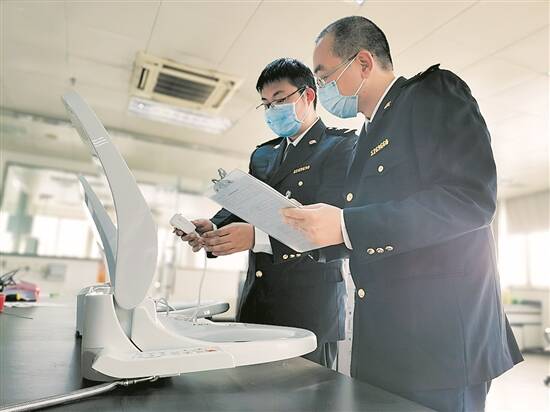 佛山海关驻禅城办事处关员对进口智能坐便器产品质量进行检验