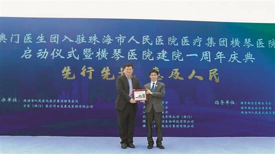 澳门中医药学会向横琴医院赠送纪念牌 图/横琴在线