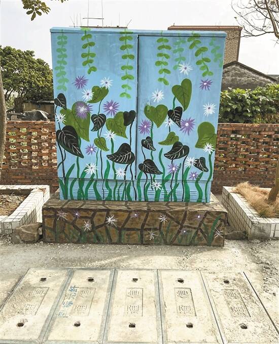 走进光明村入村道路,一间间美丽的“小花屋”吸引了笔者的注意。仔细一看,原来是一个个配电箱,箱体画上了栩栩如生的荷花、菊花、风信子,青翠的绿叶和五颜六色的花朵使原本冰冷碍眼的配电箱变成生机盎然的“水彩画”,与周围环境融为一体,成为一道别致的景观。
