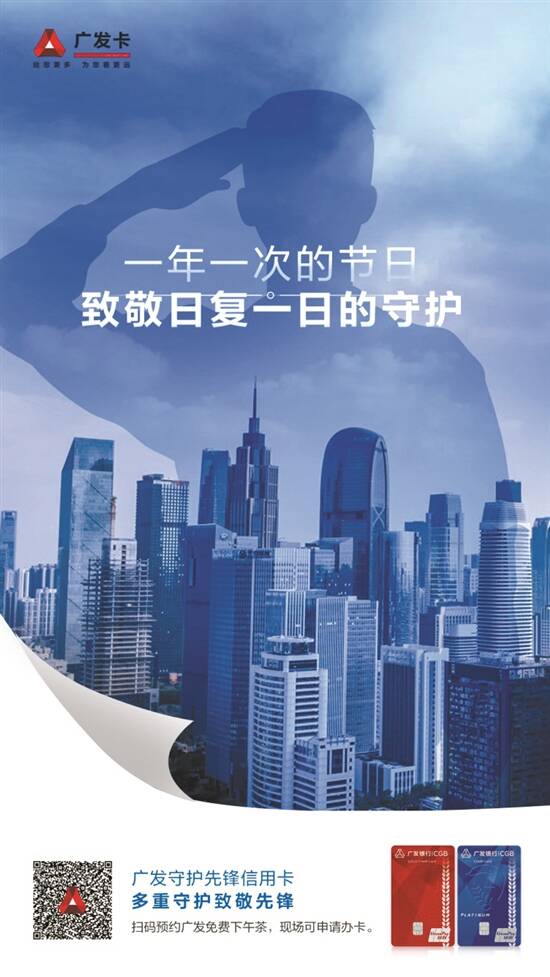 1月10日是第一届“中国人民警察节”,在这个特别的“110”节日,广发银行正式推出“广发守护先锋信用卡”。该款信用卡专为警察等量身打造,权益涵盖保险保障、日常生活、差旅出行等,旨在为政法客群带来有温度的金融服务。