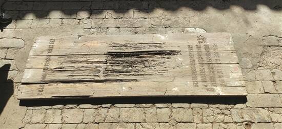 值得一提的是,在堆满杂物的侧房,还遗留着一块木质牌匾。此匾长约两米,表面部分区域被白蚁侵蚀受损,只能依稀辨认出匾中的 “士”字,“进”字几乎完全破损。但轻抚表面灰尘,“光绪十六年庚寅 恩科会试中式第一百名贡士李绮青立”的关键字样清晰可见。“这一进士匾证明了此地正是李绮青的进士府第!”刘汉新激动地说。