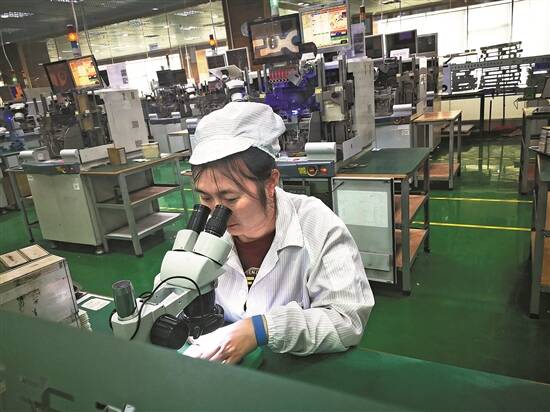 香市科技产业园位于松山湖大道与石大路交汇处,占地总面积1524亩,分三期建设。松湖智谷占地250亩,是产业园一期进驻项目,也是经市政府认定的市产业转型升级基地。12日,记者来到松湖智谷产业园,只见园内树木悠悠,花草缤纷,冬日凉风中,感觉心旷神怡。在产业园A2栋三楼一家生产LED器件的企业生产车间里,记者透过车间玻璃看到,车间内几乎看不到员工,只有一台台的大型机器在自动化运作。