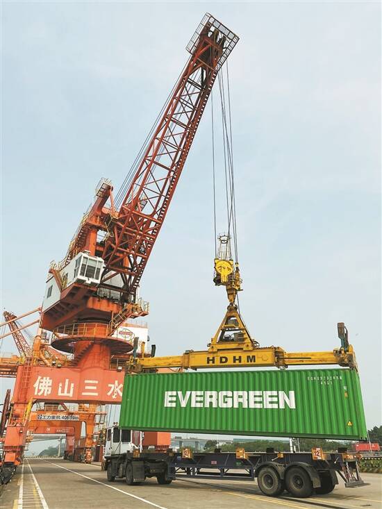 “湾区一港通”出口货物在三水港吊装上指定船舶