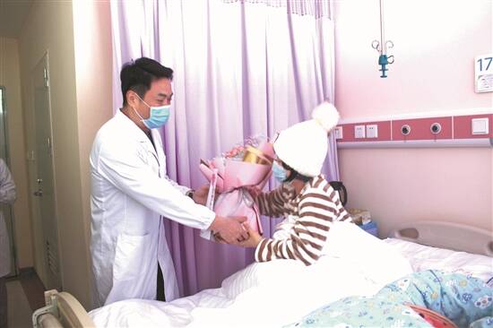 坪山区妇幼保健院院长谭惠慰问在新综合大楼产房出生的两个婴儿家属,并送上了纪念品和母婴健康护航计划礼包。