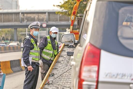 上午9时,记者跟随民警来到现场,发现该路段确实有多辆车辆违停,途经该道路的骑行群众只能绕行机动车道,致使人车混行影响道路通行。当日上午,交警对5辆堵塞道路的违停车辆开出了违法停车告知单,劝离违停机动车7辆。针对2辆无法联系车主的机动车,交警随即叫来拖车,依法将其拖离。