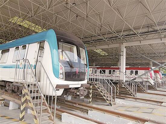 广佛地铁夏南综合基地停靠的列车