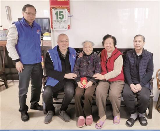中间手持红包者为梁秀英老人