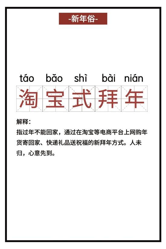应该说,今年流行的“淘宝式拜年”就是多种因素综合影响的结果,它在一定程度上弥补了无法当面拜年的遗憾,在未来,这个“新年俗”或将持续存在。无论回不回家,通过淘宝将心意送达,已经成为春节的新年俗。 (沈钊)