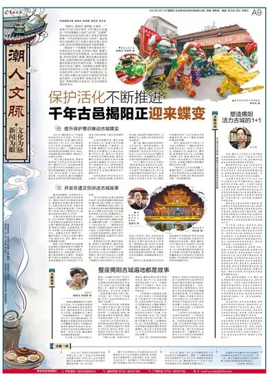 推动老城蝶变,与延续历史文化脉络、推动古城保护开发息息相关。揭阳古城所在的榕城区就提出,要推进古城遗址遗迹保护活化,还原古城水系风貌,完善古城景区公共服务配套设施,开发青狮、行彩桥、翁仔灯等特色文化,彰显古城民俗风情和人文气息。