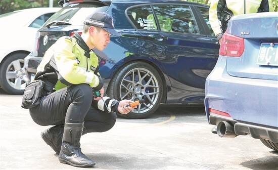 掌握了车牌和出行规律,整治组立即展开行动。3月2日上午,打假高手齐警官提前来到明珠路上冲路段蹲点,其他民警在沿线巡逻。大约11时半,巡逻交警在明珠路上冲医院路段时听到一阵低沉有力的排气管轰鸣声。交警立即控制车流,远远看见有辆黑色小车正在掉头。