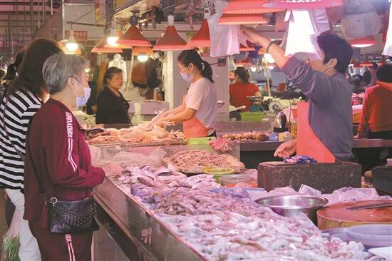 早上10时,市民沈阿姨如常来到汕头瑞平市场,购买当天全家的新鲜食材,一盒卤鹅、两斤牛肉丸,几尾新鲜活鱼再加数斤海虾,沈阿姨满载而归。她开心地告诉记者,“现在菜市场干净整洁,不怕踩脏了,穿着新鞋也能来,我还能推着小孩过来买菜!”