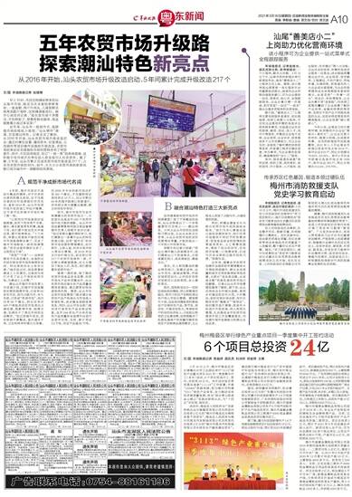 近年来,随着全市农贸市场硬件设施和软件管理整体水平得到持续提升,群众生活质量和城市文明形象得到有效改善,大部分“进去是皮鞋,出来是水鞋”的脏乱差农贸市场已经翻篇。记者从汕头市市场管理监督局了解到,接下来,汕头还将结合乡村振兴战略、美丽乡村建设和百村示范,千村整治,组织对城乡结合部、农村长期存在的“集散点”“疏导区”、临时集市进行清理,按条件分批进行升级改造,纳入规范化管理,扎实推进全市农贸市场提质升级工作全覆盖落实,切实提升城市发展能力和群众生活品质。