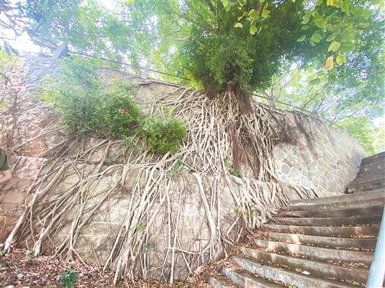 部分惠州府城城墙被榕树根系盘满