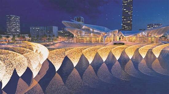 据了解,音乐喷泉项目将运用当下顶级的喷泉技术。音乐响起时,喷泉可以随着声光电的变化而呈现出不同的表演,还可用电脑进行编程使其变化更为丰富。喷泉主体由三条自由飘逸的弧形与三个圆形相切,长96米,宽73米。中心设置一座主喷,环主喷布置的点阵水膜及环湖设置的彩色激光,将共同拓展水秀的表演范围和层次。