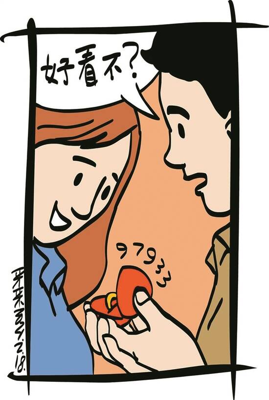 天明回来,桃花问:“你到底干啥去了?”见桃花生气的样子,天明只得说:“我在工地加班。”桃花说:“为啥要加班?”半天,天明从口袋里掏出了一张发票。桃花拿过发票一看,上面写着:金戒指一枚,金额:2800元。