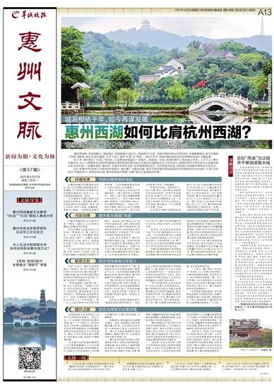 2021年惠州市《政府工作报告》中也提出,惠州要广泛集中民智,高水平规划提升西湖品质和环西湖中央文化休闲区,打造“足并杭州”的靓丽名片,新的历史阶段,惠州西湖如何再度“出圈”扬名万里成新的答卷。