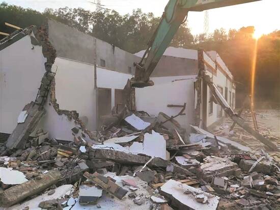 据悉,该农业推广基地违法建筑地处山边,存在安全隐患。同时该处地块涉及园山街道重点交通工程规划建设坪南路项目,加之历史遗留问题,该地块非法占用行为查处困难重重。园山街道高度重视该地块清理工作,综合行政执法队多次走访社区、股份公司、居民小组,积极约谈违法占用当事人,并采用“执法+普法”模式,不断上门宣讲法律政策,破除阻力,最终,当事人同意配合清拆工作,自行清退房屋。在清退房屋后,园山综合行政执法队联合土地整备中心、坪南路施工单位组织开展拆除行动,安全拆除该处违建,拆除面积约1000㎡。