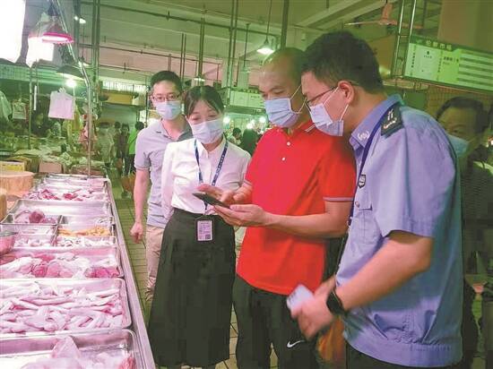 此外,区市场监管局四级调研员吴华田率检查组来到容桂农贸市场,重点检查了冷冻食品、猪(牛羊)肉档、活禽档等档口;查看药品零售药店内购买退热类药品登记上报情况、处方药销售登记等情况。