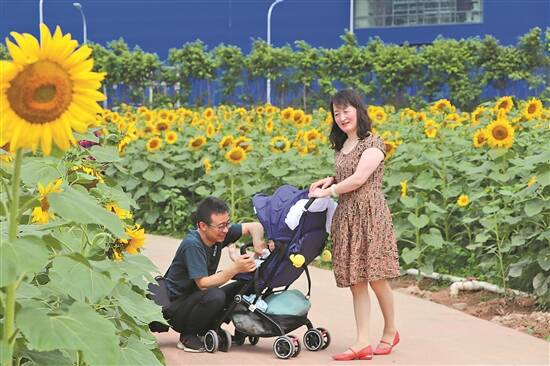 游客畅游南海千灯湖附近的向日葵花海