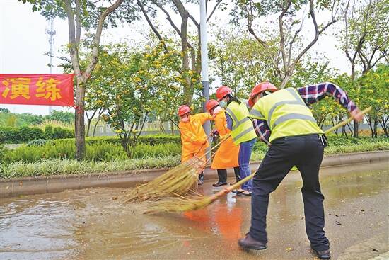 羊城晚报讯 记者景瑾瑾、通讯员邝泓根摄影报道:4月7日,禅城城管联合区环境卫生技术服务中心与管辖的清洁服务公司组织开展了年度防汛应急演练。演练模拟了汛期期间发生极端天气后环卫的应急清理工作。