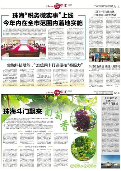 四月芳菲,最美是人间。珠海市斗门区莲洲镇飘来阵阵葡萄香。暖风吹绿了一望无际的田野,也吹熟了“甜过初恋”的斗门葡萄。