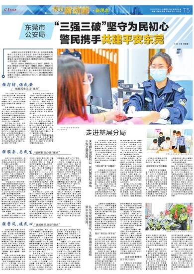 强打防、保民安,破解民生关注“痛点”;强服务、为民生,破解群众办事“堵点”;强警风、暖民心,破解作风建设“难点”——“三强三破”是东莞市公安局交出的答卷。而这份答卷的背后,是一串串与群众息息相关的平安数据:盗窃警情同比下降20.2%,电诈警情降幅全省最大,交通亡人事故同比下降42%,群众窗口办事时长缩短33.7%……